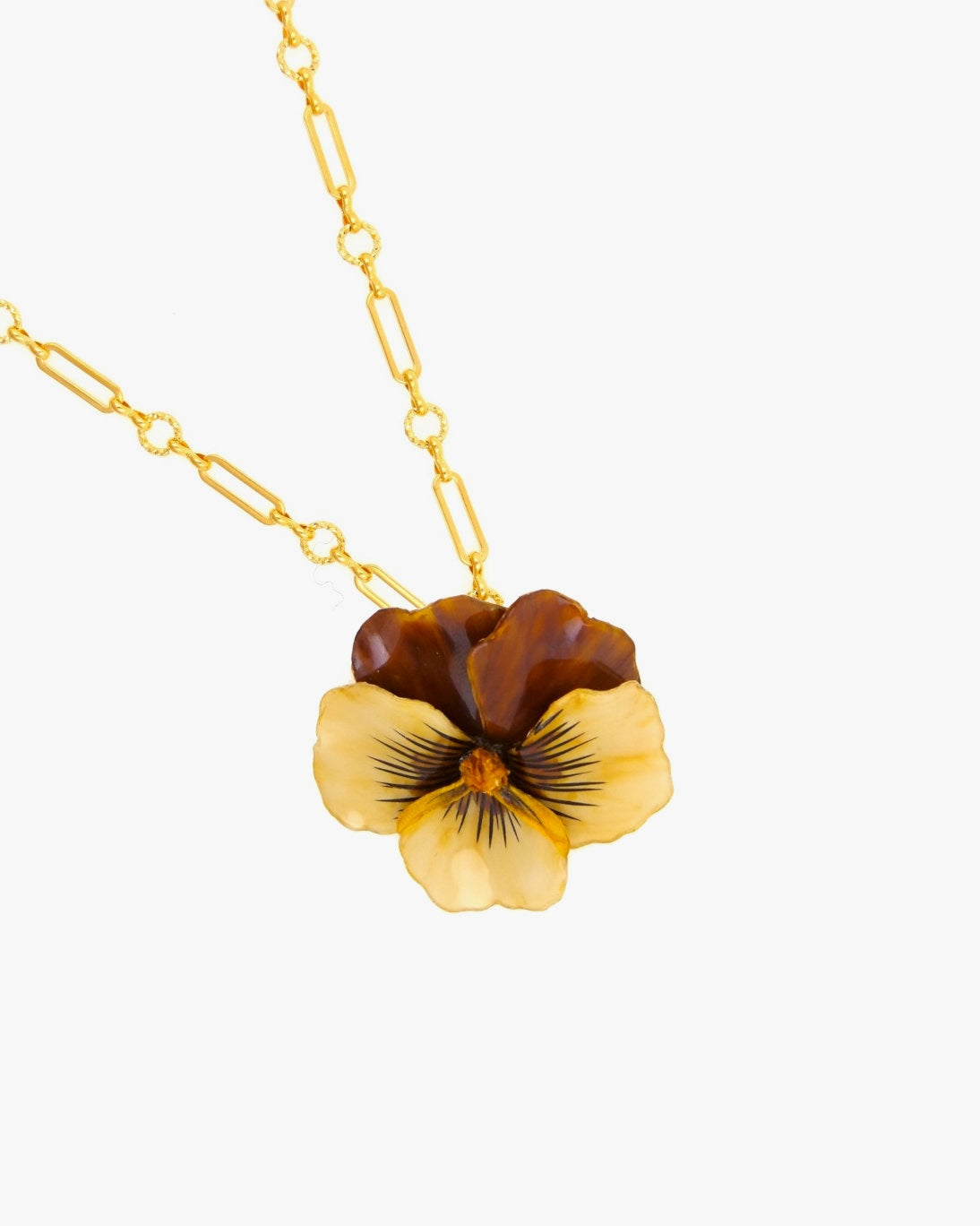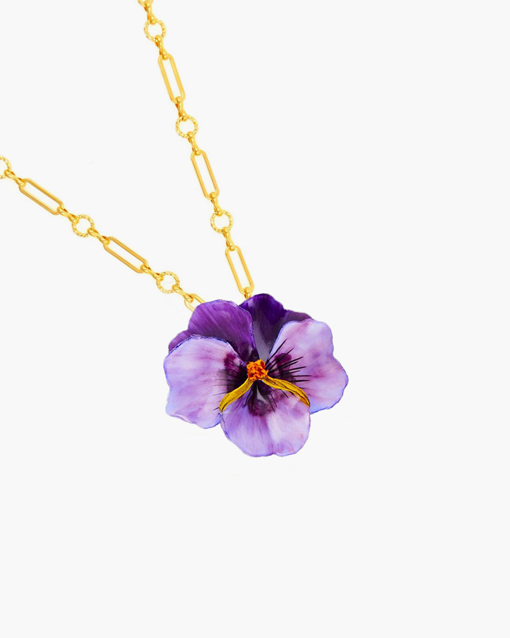 Each Ciléa Viola Pansy pendant is colored with carefully selected, handcrafted pigments, resulting in deep, long-lasting, and unique hues. The manufacturing process involves several meticulous steps, cutting, shaping, coloring, and finishing, all done by hand with patience and precision. This expertise guarantees high-quality, authentic, and unique costume jewelry, perfect for gifting to a woman and conveying a symbol of elegance and refinement.
