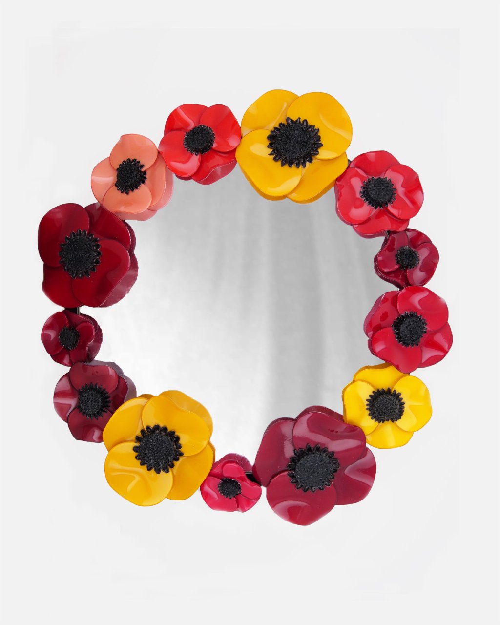 miroir sorcière déco française avec fleurs d'anémone multicolores